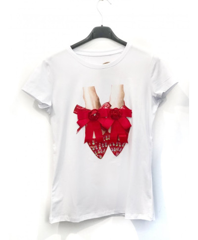 T shirt donna Bianca Con scarpette